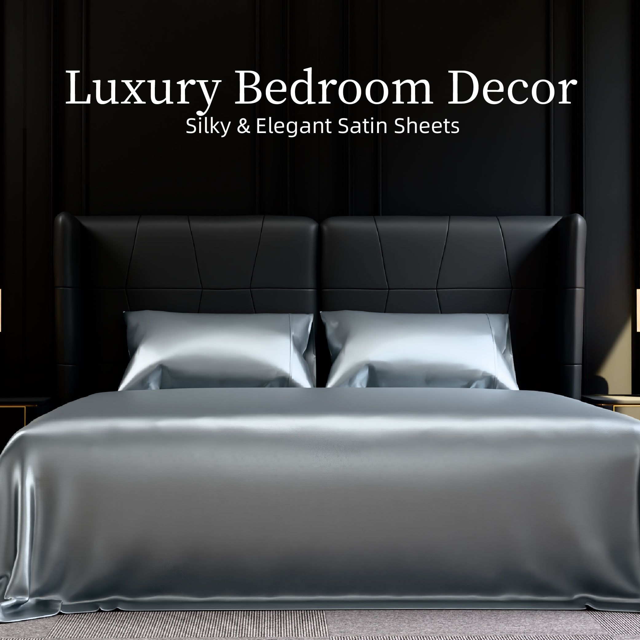 Satin Bed Sheets, King Size Sheets Set, 4 Pcs Silky Bedding Set with 15 Inches Deep Pocket for Mattress (King, Grey) Satin Bed Sheets, King Size Sheets Set, 4 Pcs Silky Bedding Set with 15 Inches Deep Pocket for Mattress (King, Grey) Satin Bed Sheets, King Size Sheets Set, 4 Pcs Silky Bedding Set with 15 Inches Deep Pocket for Mattress (King, Grey)