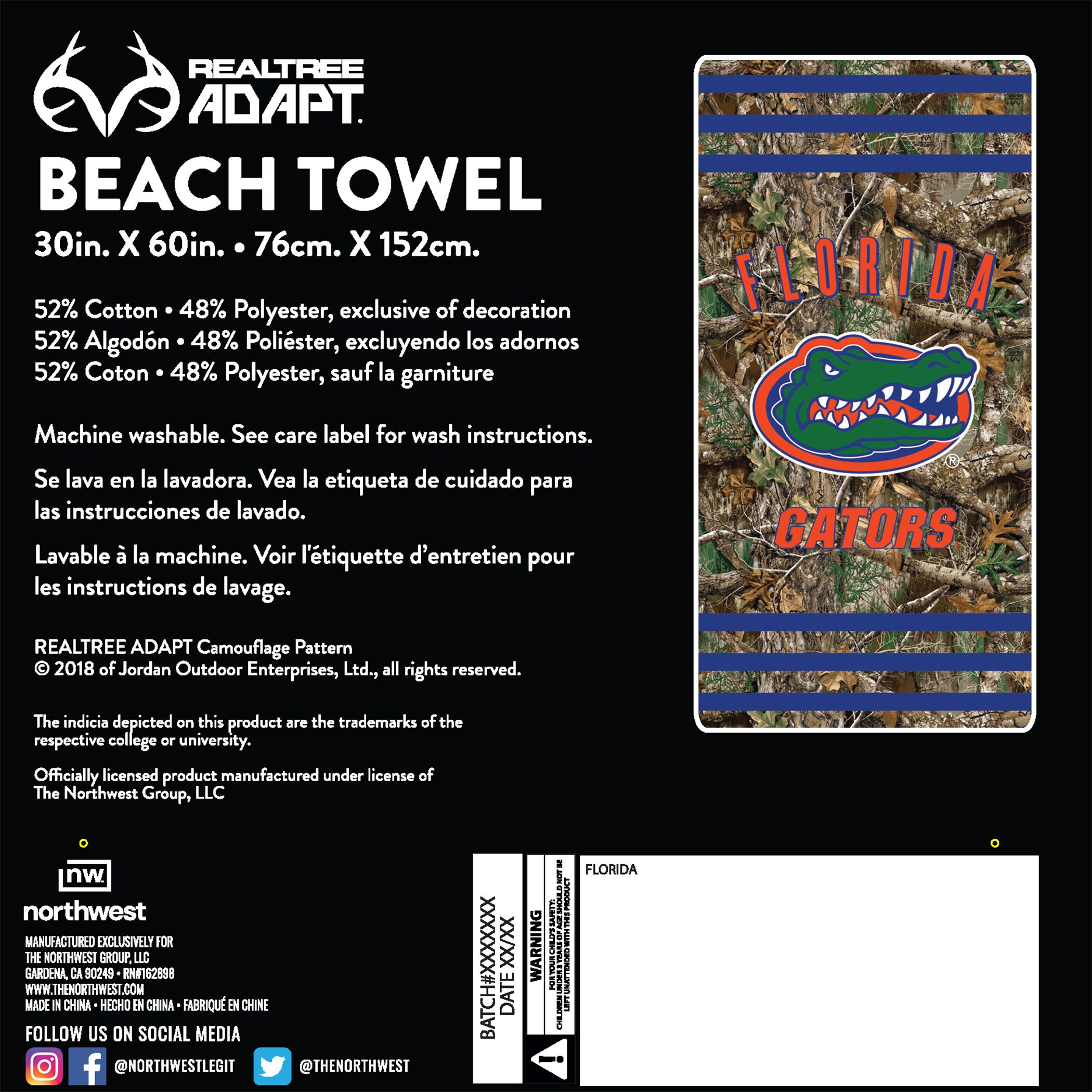 Florida OFFICIAL NCAA Realtree "Stripes" Beach Towel; 30" x 60" Florida OFFICIAL NCAA Realtree "Stripes" Beach Towel; 30" x 60" Florida OFFICIAL NCAA Realtree "Stripes" Beach Towel; 30" x 60"