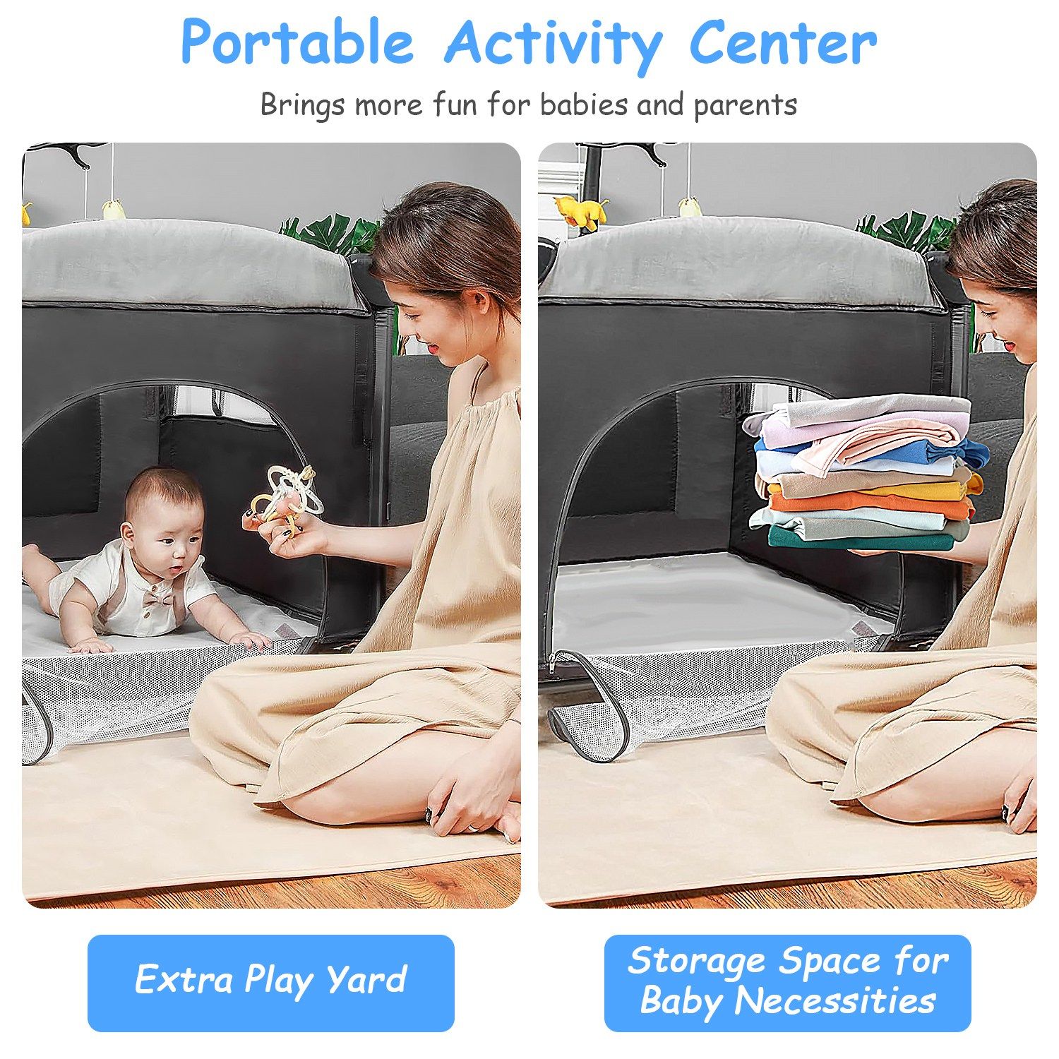 Home > 6 In 1 Foldable Baby Crib with Activity Center Diaper Changing Table Mosquito Net Mattress Music Box Toys Storage Tray Baby Bassinet Baby Sleeper