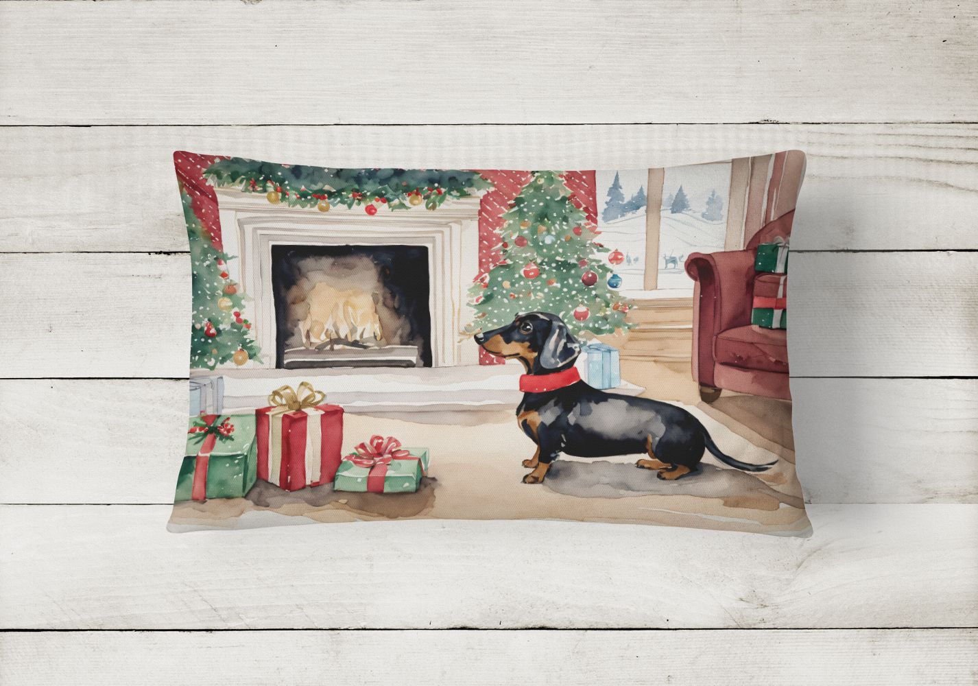 Throw Pillow featuring breed specific Dachshund artwork. Celebrate Christmas with this Christmas Pillow. Embrace the fusion of comfort and style with Caroline's Treasures Fabric Decorative Pillow. This 12x16 inch outdoor pillow is designed to complement your patio furniture, adding a splash of color and artistry to your outdoor setting. Constructed with a 100% Polyester Fabric pillow sham filled with a plush pillow form, this cushion is as comfortable as it is durable. Our outdoor pillow utilizes a novel fabric, meticulously woven for enhanced water resistance. This soft canvas material is equally suited for your indoor couch as well as outdoor settings such as the patio, porch, or veranda. To ensure enduring vibrance, we employ colorfast dyes resistant to fading even when subjected to weather elements. The making of this pillow involves the delicate sewing together of three fabric pieces to create a sham, into which a polyester insert is carefully placed. The result is an overstuffed pillow that tenaciously holds its shape. With both the sham and the pillow insert crafted in the United States, these handmade pillows are a testament to superior local craftsmanship. Note that as these pillows are handmade, sizes may slightly vary, enhancing their unique appeal. Enjoy comfort in style with Caroline's Treasures Fabric Decorative Pillow.