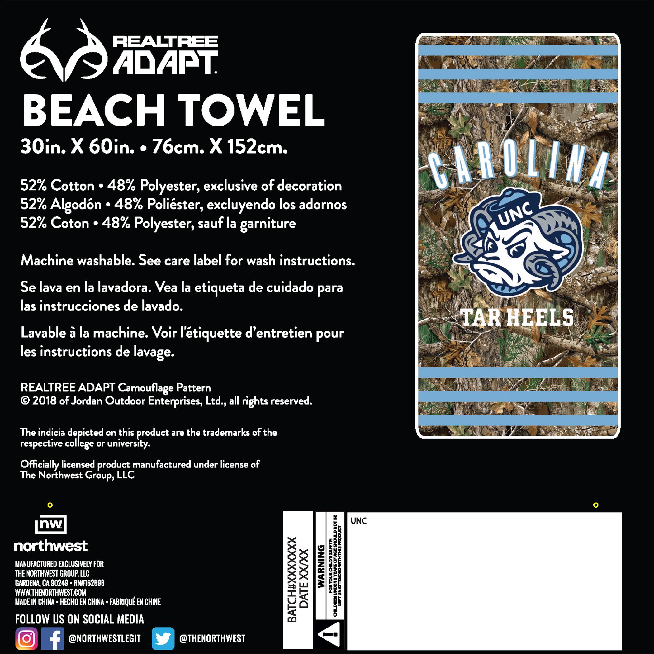 UNC OFFICIAL NCAA Realtree "Stripes" Beach Towel; 30" x 60"