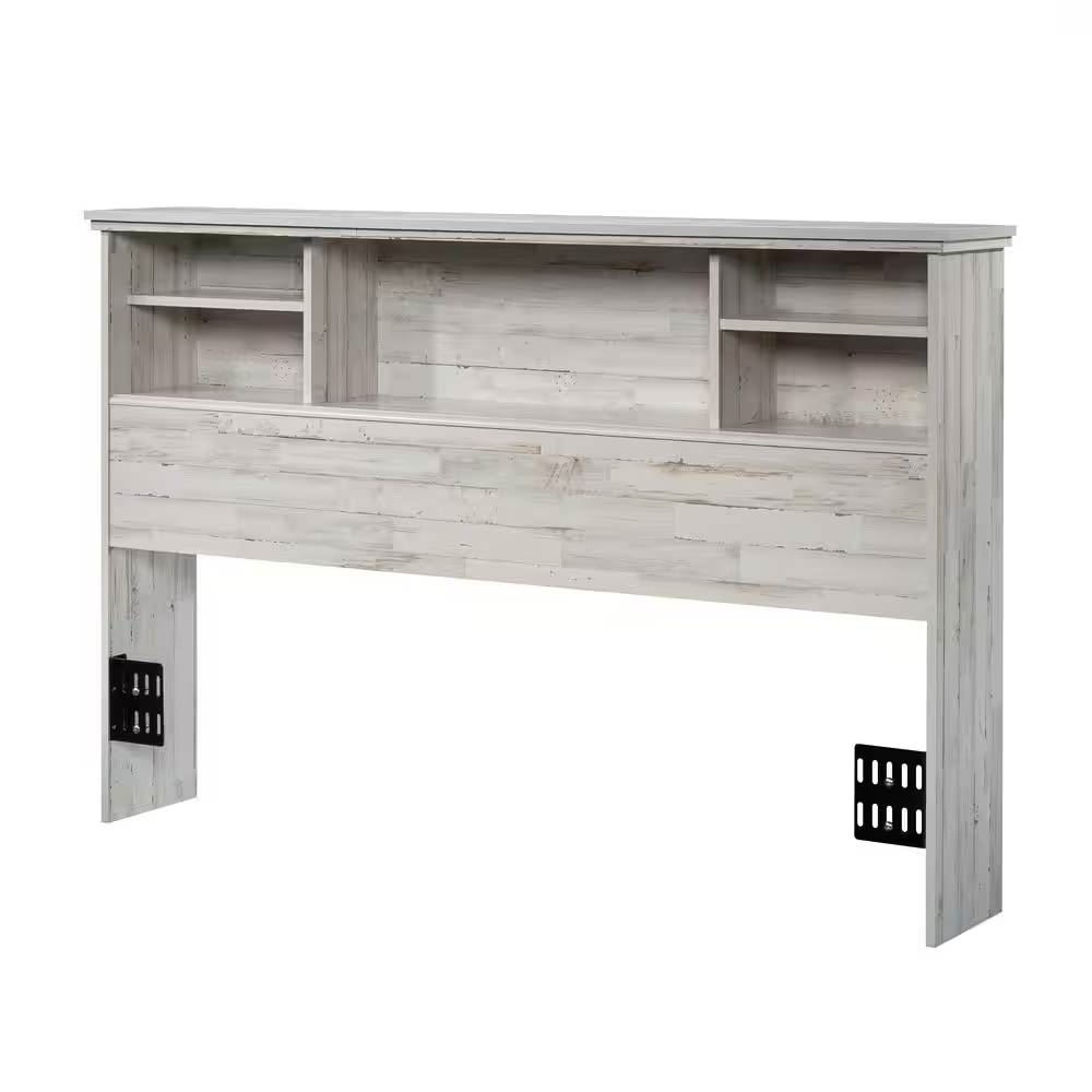 A headboard that works as hard as you do. This Full / Queen size Farmhouse Bookcase Headboard in Grey White Wood Finish blends in with your modern farmhouse decor while making a big statement in your bedroom. This queen bookcase headboard attaches to a full or queen size bed frame, making it the perfect choice for the master bedroom, the guest room, or just about anywhere you need a bed solution. This headboard features a spacious display area for your alarm clock, phone, tablet, or books-all your bedroom essentials. This rustic bookcase headboard features two adjustable shelves to customize the storage and display space to your liking and needs. Your full-size headboard with storage will remain free of cord clutter with the enclosed back panel that features cord access to charge your phone or smart watch. Finished in a rustic White Plank, this full/queen headboard upgrades any room with style and function.