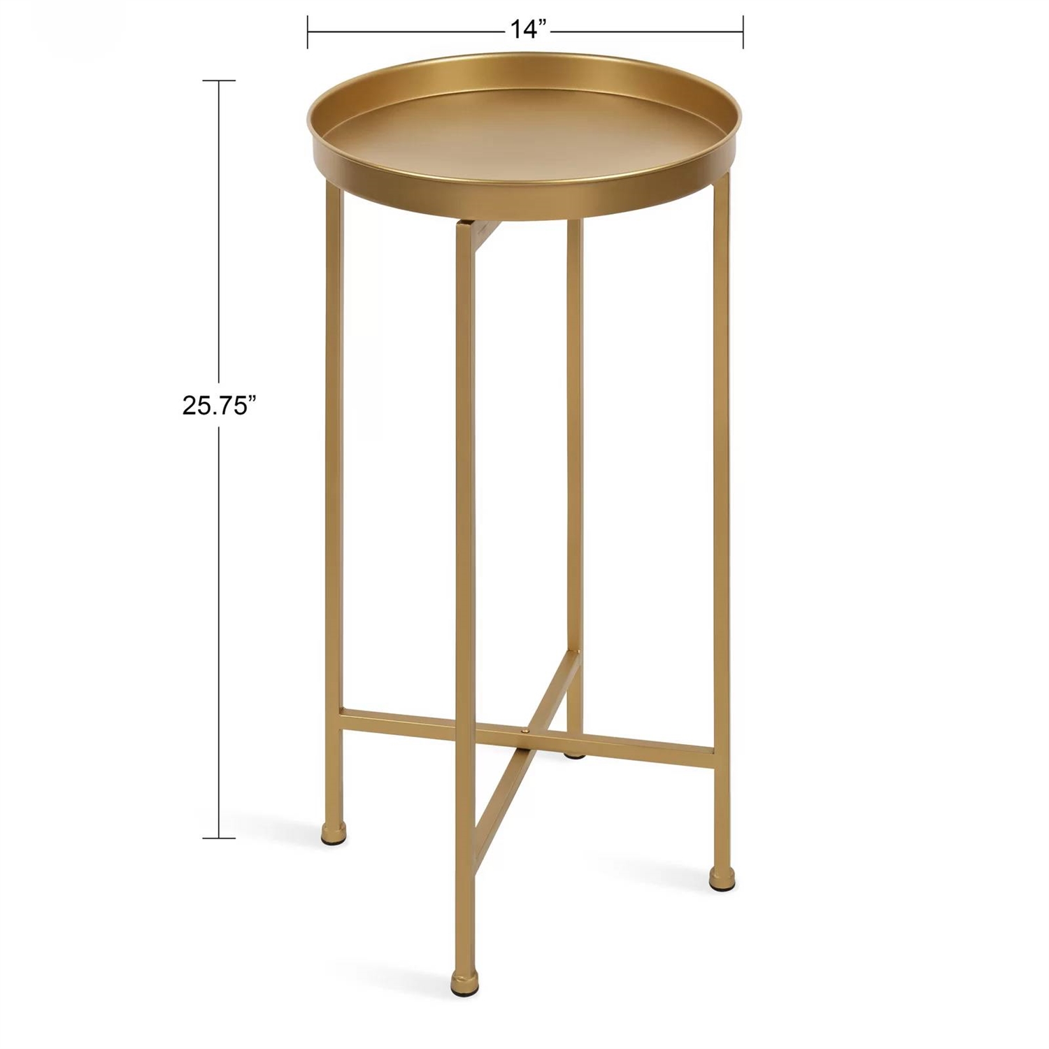 This Classic Gold Finish Metal Round End Table Nightstand with Removable Tray Top brings sleek style to your living room, bedroom, or home office. It’s made of metal in the finish of your choice and features slim legs with lower crossbars for added stability. We love that its removable 14” diameter circular top can easily double as a cocktail tray. This versatile table can be used as an end table or as an alternative nightstand. It completes the look in any modern, bohemian, or glam setting.