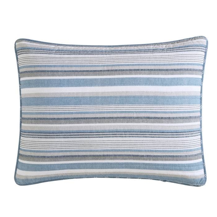 Blue Nautical Lines is bringing back the classic Daybed Set with an updated fresh look. This Daybed Set features chambray blue, combined with a soft grey creating a visually pleasing bedroom statement with crisp white. The set features different weights of horizontal striping seen on the face and brought into the shams. The daybed cover reverses to a small white anchor tossed on a chambray ground for that extra Nautical surprise that is also brought into the sham cordings. Made of 100% cotton, this daybed set is perfect for year-round use.