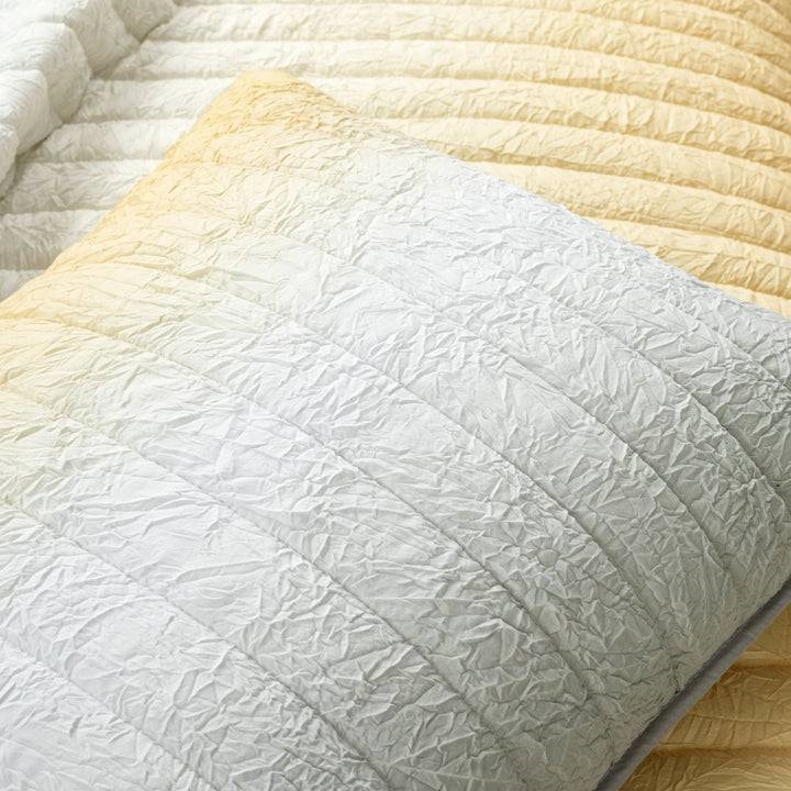 This unique Full/Queen Yellow Grey Ombre Crinkle 3 Piece Quilt Set has a cozy crinkled fabric that's detailed with a fun quilted pattern. This three-piece set features a trendy ombre design showcasing the two colors that transition into each other.