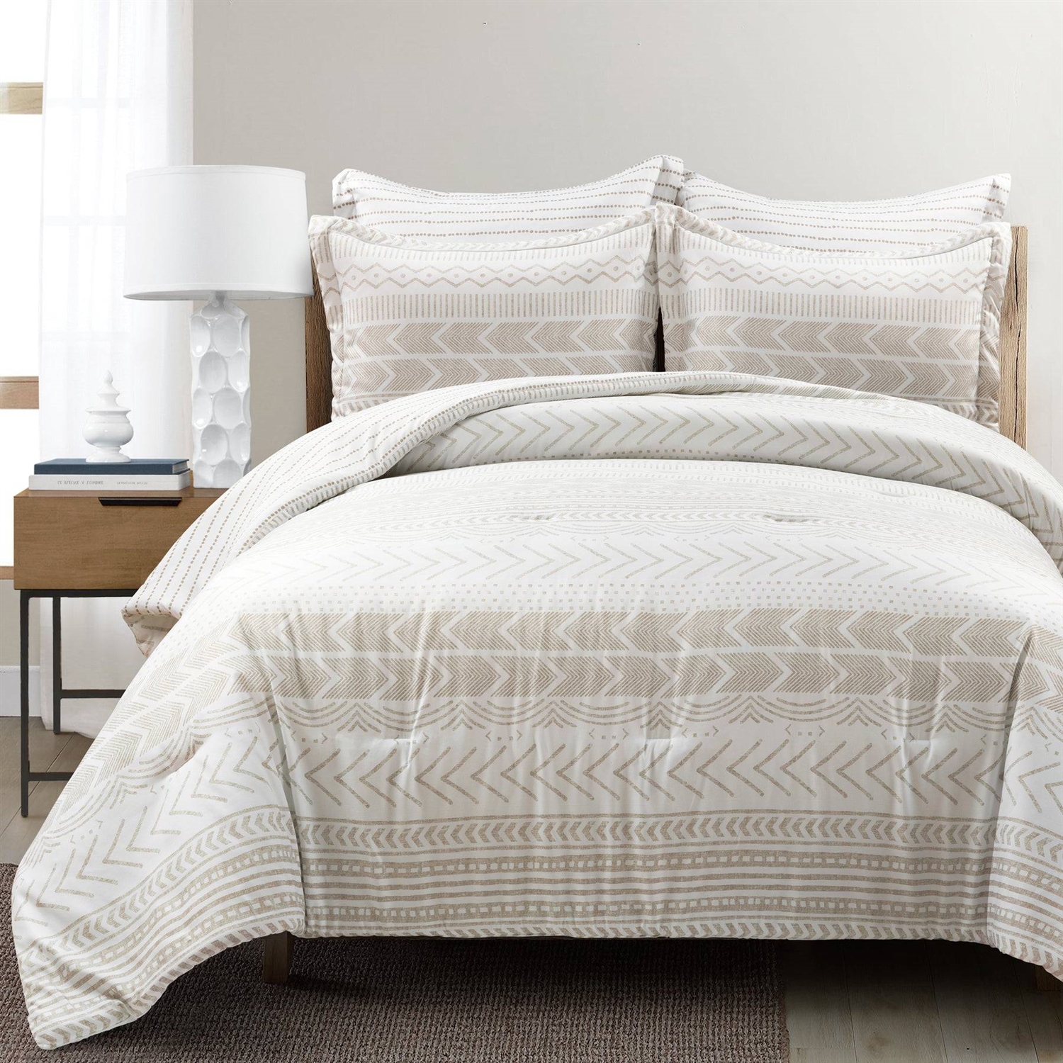Full/Queen Scandinavian Chevron Beige Taupe 5 Piece Lightweight Comforter Set