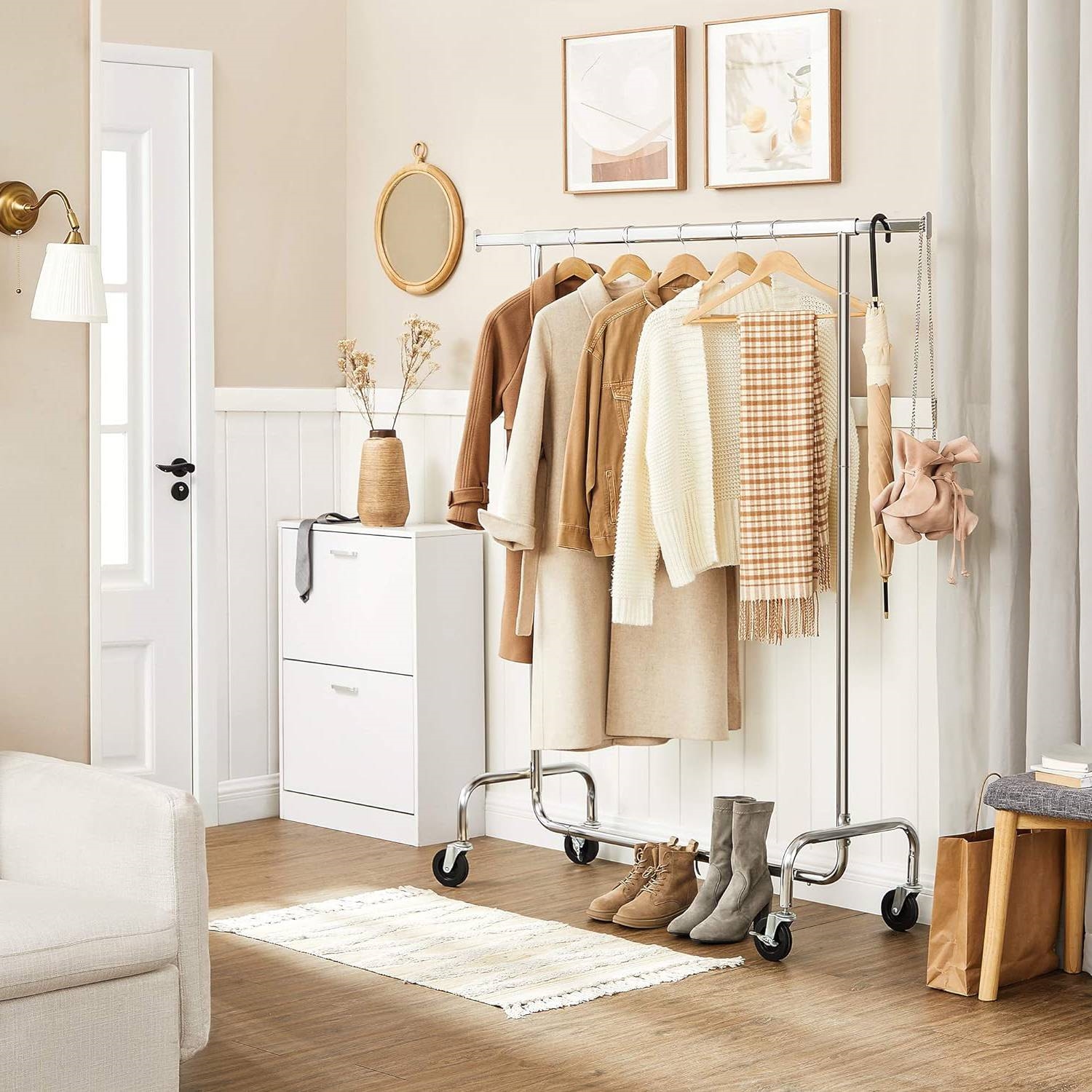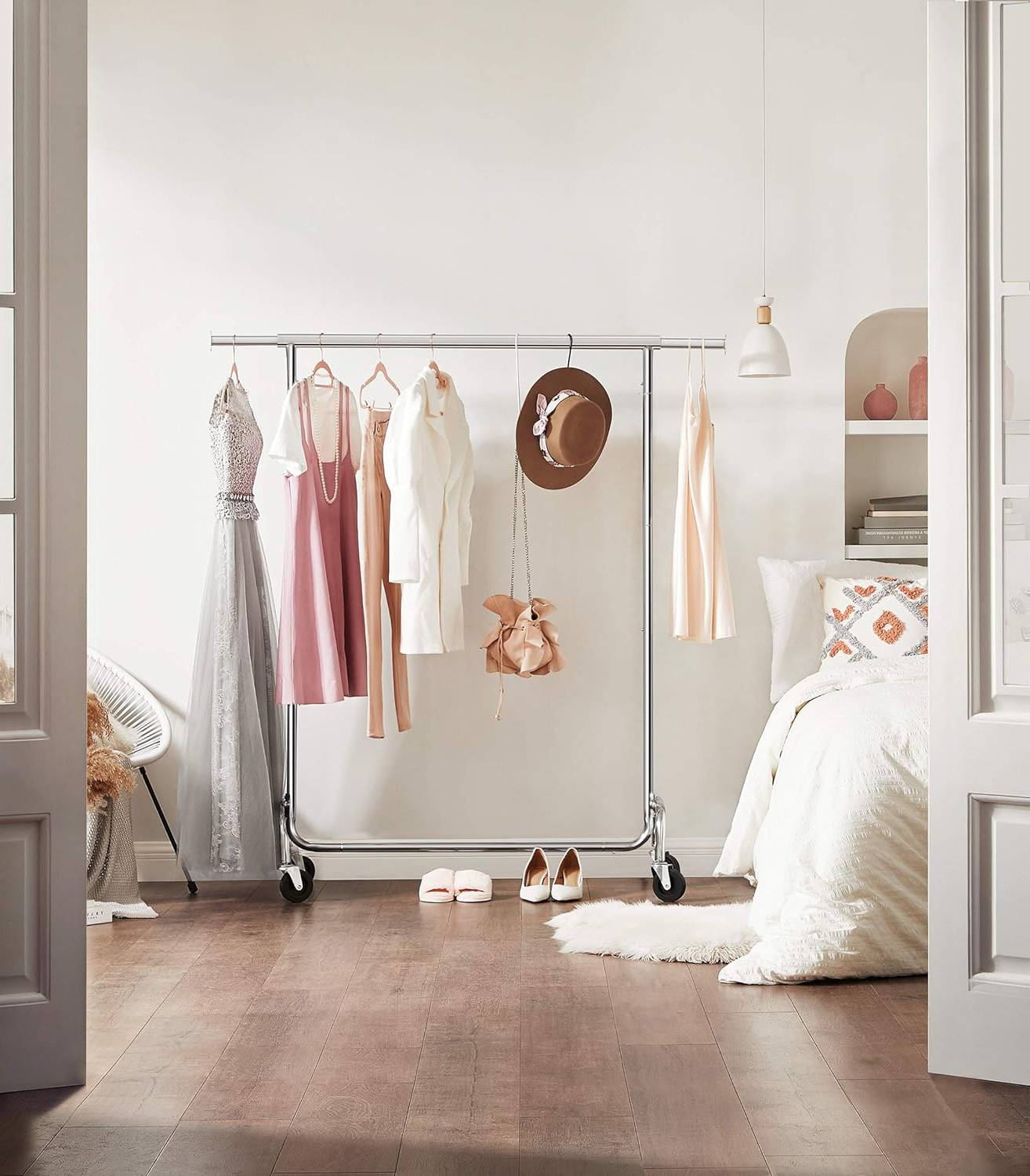 • MOVE SMOOTHLY EVEN FULLY LOADED: With 4 reinforced 360° swivel PP casters (2 with brakes), this clothes rack on wheels is convenient to move around or to stay in place