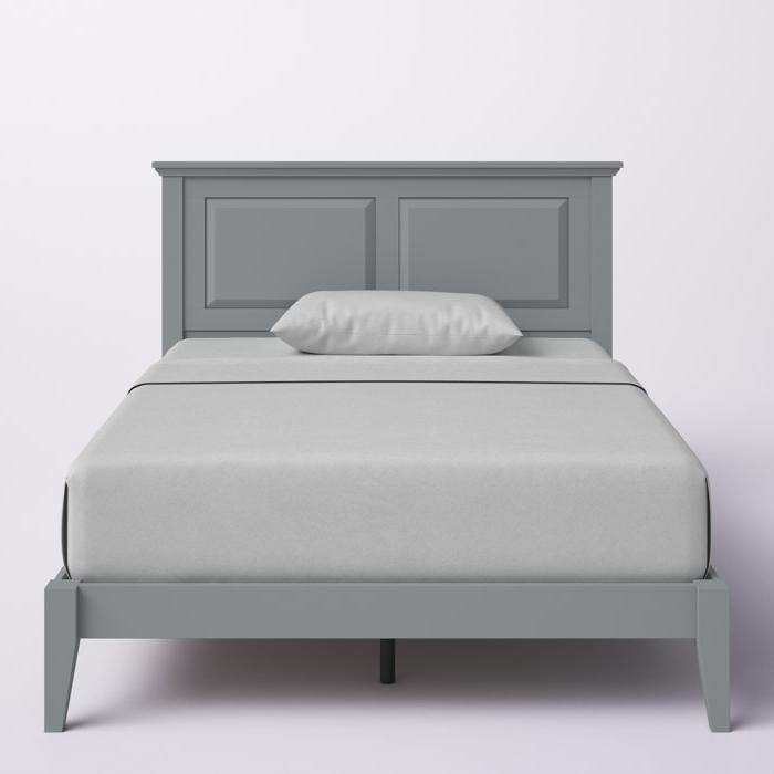 This Twin Size Retro Solid Oak Wooden Platform Bed in Grey with prominent headboard is a must have for any bedroom! Inset panels and retro molding that adds refined elegance to any bedroom or guest room. It is crafted from solid oak, a naturally hard and durable wood. Platform bed sits on straight and slightly tapered legs that raise this bed almost 8 inches off the floor. This system of slats eliminates the need for a box spring and works best with any standard mattress (recommended 10 inches of thickness). Assembly is required.