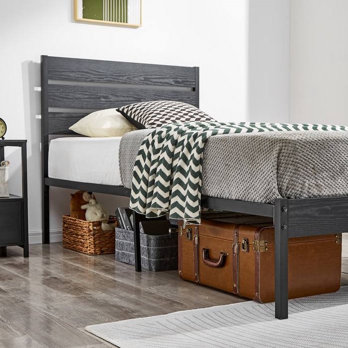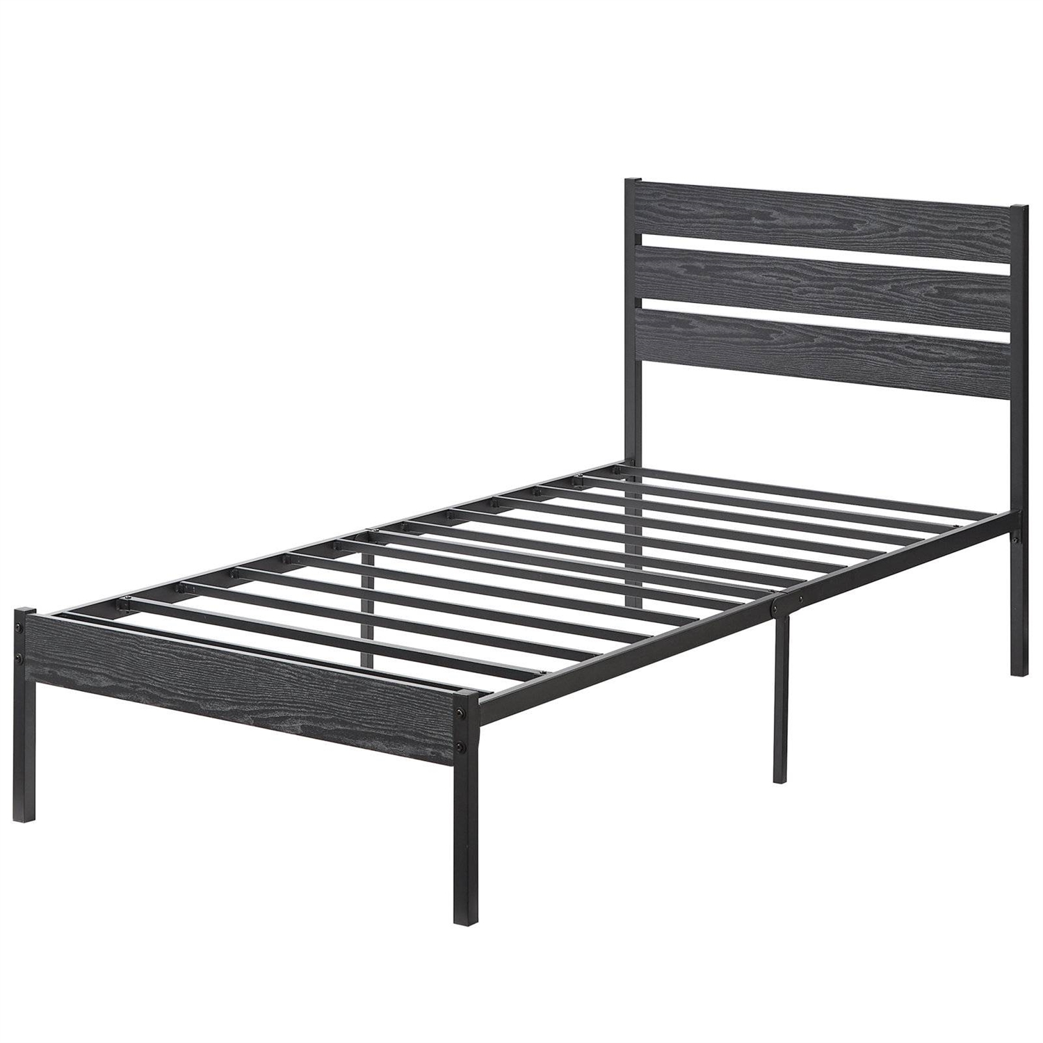 Twin size Industrial Platform Bed Frame with Wood Slatted Headboard in Black Twin size Industrial Platform Bed Frame with Wood Slatted Headboard in Black Twin size Industrial Platform Bed Frame with Wood Slatted Headboard in Black Twin size Industrial Platform Bed Frame with Wood Slatted Headboard in Black Twin size Industrial Platform Bed Frame with Wood Slatted Headboard in Black