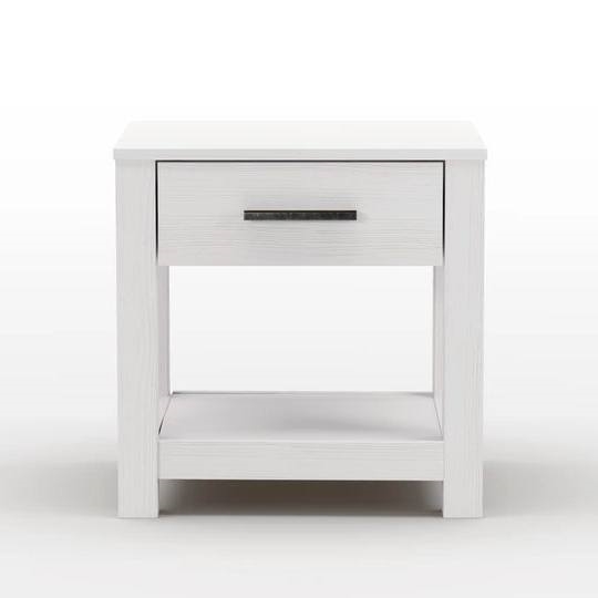 Crafted from 100% solid pine wood, the FarmHouse Traditional Rustic White 1 Drawer Nightstand boasts a sturdy construction and modern design, including a low profile, a drawer with metal glides, and an aluminum pull. Sure to last for years, this nightstand provides a modern look to any bedroom.