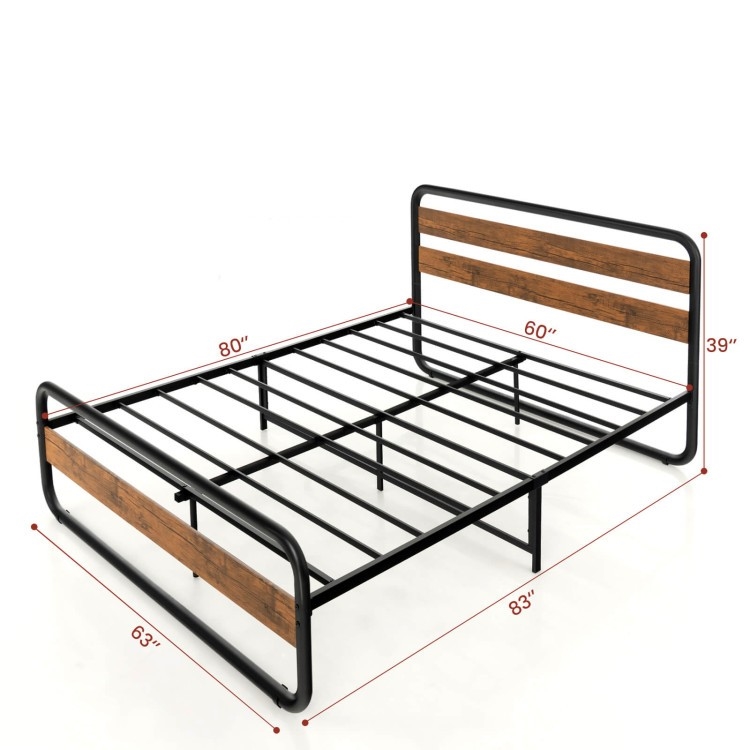 Queen Industrial Wood and Metal Tube Platform Bed with Headboard and Footboard Queen Industrial Wood and Metal Tube Platform Bed with Headboard and Footboard Queen Industrial Wood and Metal Tube Platform Bed with Headboard and Footboard Queen Industrial Wood and Metal Tube Platform Bed with Headboard and Footboard