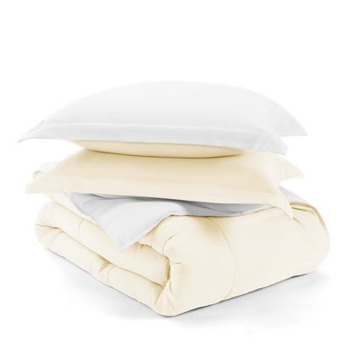 Full/Queen size 3-Piece Microfiber Reversible Comforter Set in White and Cream